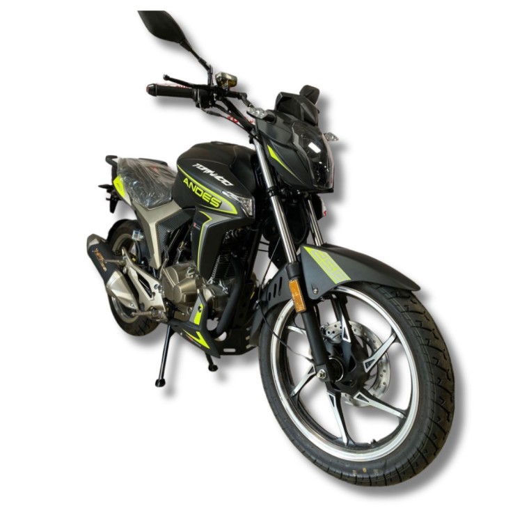 Мотоцикл Andes 250 см³ оснащен мощным двигателем, системой воздушного охлаждения и двойным стартером (электро- и кик-стартер). С 5-ступенчатой механической коробкой передач, дисковыми тормозами и системой зажигания CDI он подходит для езды по бездорожью, имеет механическое сцепление и прочные колеса.