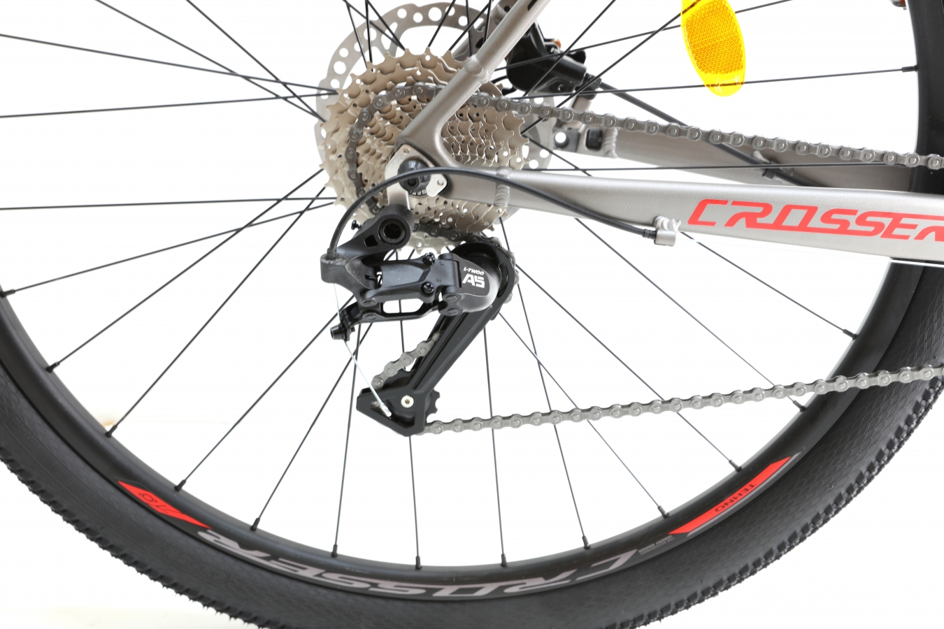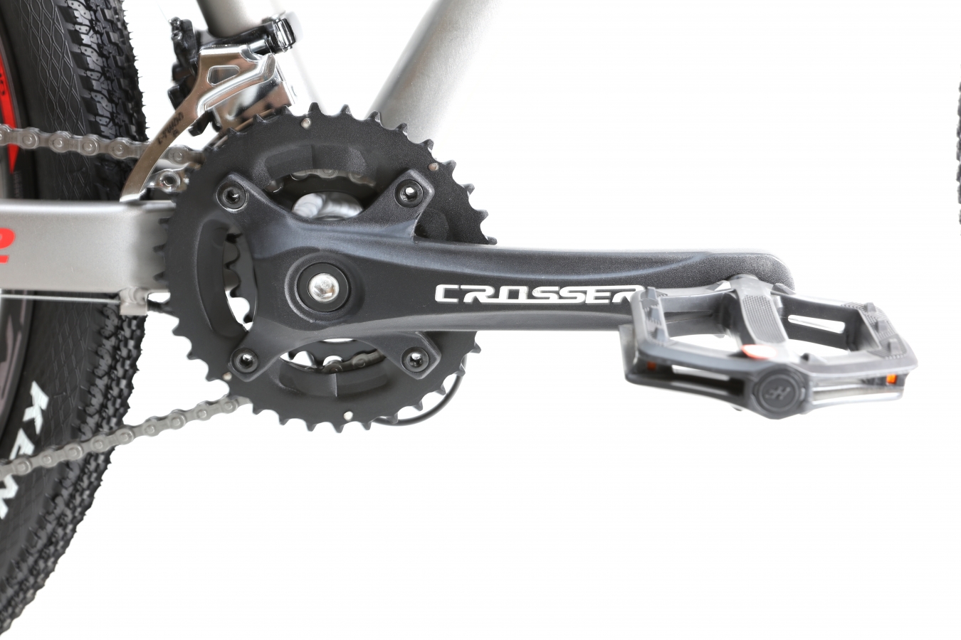 Crosser MT-042 27.5″ — это прочный MTB-велосипед, оснащенный 18-скоростной трансмиссией L-TWOO A5 и гидравлическими тормозами Logan. Алюминиевая рама 6061, вилка Zoom с амортизацией и 27,5-дюймовые колеса с покрышками Kenda обеспечивают отличный комфорт и контроль на разнообразных трассах.