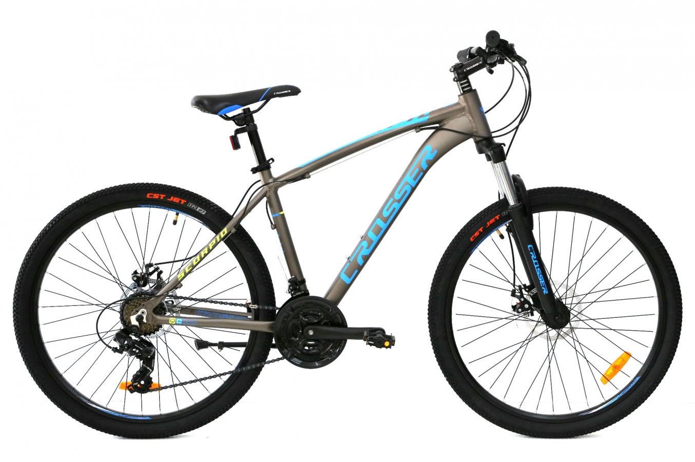 Crosser SCORPIO — это 26-дюймовый MTB-велосипед с легкой и прочной алюминиевой рамой 6061, задними переключателями Shimano и трансмиссией 3×7, обеспечивающей отличную универсальность на любой трассе. Оснащенный механическими дисковыми тормозами и двойными алюминиевыми ободами, он станет отличным выбором для повседневных поездок и приключений.